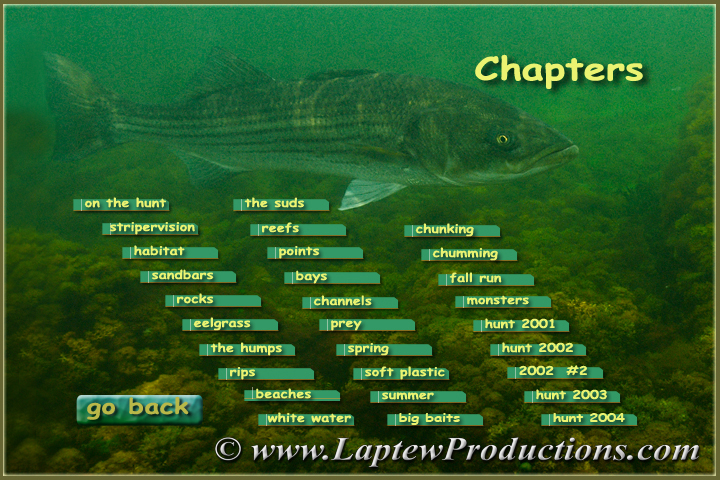 I just updated the website with an extensive description from Mike Laptew of what is in the DVD. Stripers Gone Wild