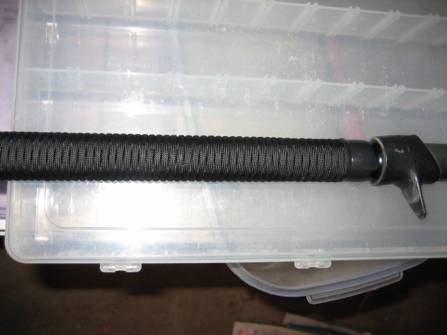 The black cord rod has one wrap over itself and then all the way down the rod. Its held w/ electrical tape at the handle(which Ill thread wrap and epoxy over) and held by the butt cap at the bottom. It was wrapped very tight, and the cord shrinks some after it gets a little wet to make it even tighter. It doesnt move.