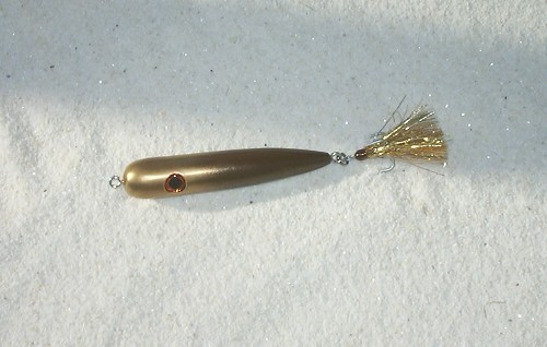 it's only 5.1/2 long, stuck some belly weights in it, now Ive got to take it swimming, hope it sinks, weights 1.5