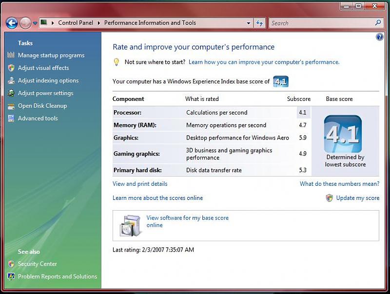 you other specs should be just fine... microsoft added a cute little rating tool... I assume 10 being the best 0 being the worst... mine got 5's accross the board and this pc is no slouch.