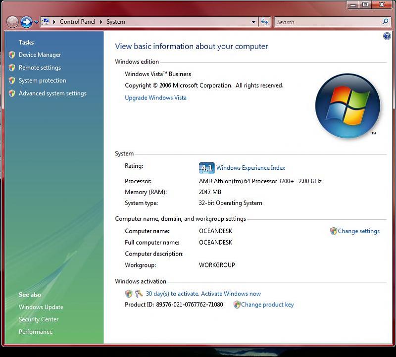 One thing that annoyed me was that vista what calls "broadband" . Upon setup it was trying to dial-out on its "broadband connection" I have a GB ethernet card and I had to force it to use it by deleting the "broadband connection" and then reconfigure it to use the GB card. Once that was "fixed" things went more smoothly. Overall I like it but what a memory hog!