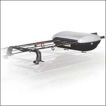 Superb roof rack mount fishing rod holder that works with all spinning, fly, and surf casting rods. Attaches directly to both Thule square load bars and oval Rapid Aero, Xsporter truck racks, Yakima round cross bars and factory installed racks with cross bars. Price new $134 - 150.00. All mounting hardware, and lock key.