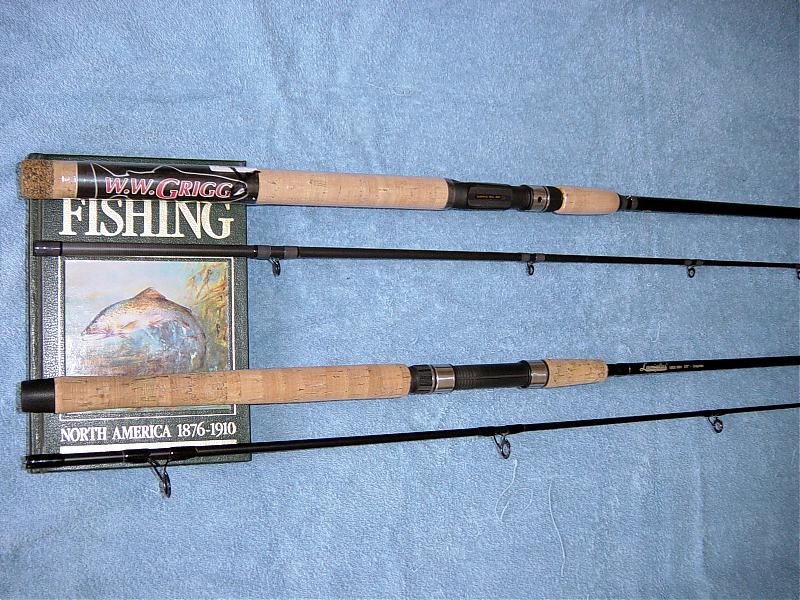 2. Brand new with tags in wrapping WWGrigg GX Graphite casting rod. It has a beautiful smoke gray color. Model: GX 802-2, GX graphite, Custom Made by W.W.Grigg, Northern Series, 2 equal pieces. Action: Medium Heavy. Line: 15-40lb. The rod has 8 double foot Fuji Guides and tip top.