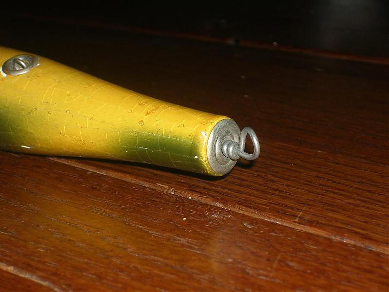 Here is a picture of some bluestreaks that I have. The taper on the tail end of that one is a little different. The lip on the bluestreaks is out a little further from the wood too. Is that one an Atom maybe? The taper on that one looks like the atoms I have, but who knows. Nice plug. I like the color. The paint job does have a little blue streak pattern look to it.