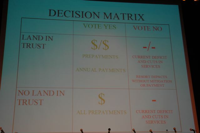 Honest to God if there was even a doubt about them coming I would have to vote yes and get the upfront monies and fight the land taken into trust.