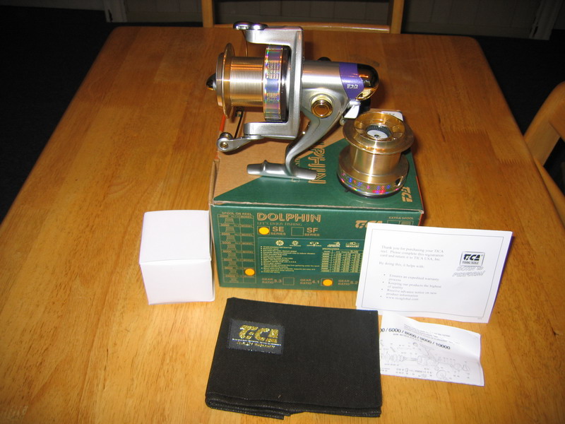 A brand new TICA Dolphin SE9000 new in box that comes with extra spool, reel nylon bag, and necessary papers. You can get this reel on the market at $102 but I'm selling it for $70 plus shipping.