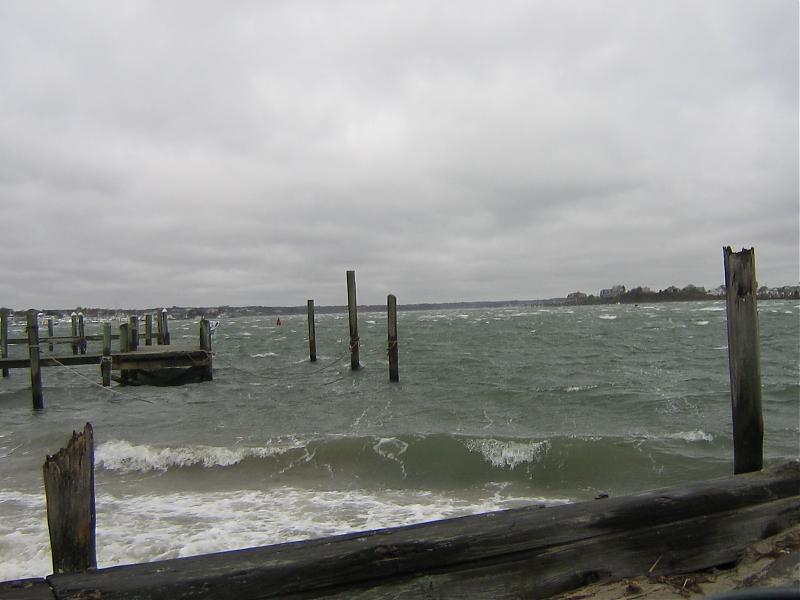 Went to check on the boat today during the storm, yes the dog (Reilly) stayed home. Never seen the inner harbor so rough.