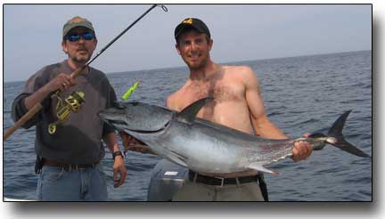 and Bob Taylor scored a 90+lb bluefin Tuna blindcasting on Stellwagen's Bank