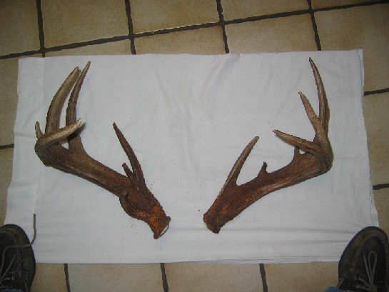 Last week my wife took a 3 point shed away from the dog that she came trotting out of our back woods with, when I came home that night the dog came running up to me with the other side!! A matched set in just dropped condition. Go figure.