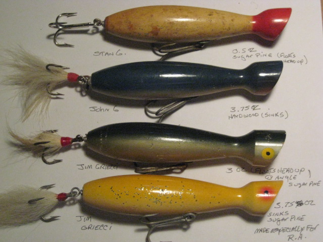 In the photo below are 4 Polaris Poppers by Gibbs. They span the years from Stan, his son John and Jim Griecci, who owend the company before the current owners in Rhode Island. All are meant to represent the large model which commonly weighs in at 3-1/2 oz.