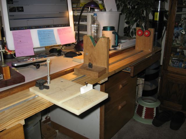 this is another hand unit I use for longer rods 2 -3/4"X2" X6ft with a Alum track from a Bi-fold door set And a Home made thread Carrage using a Neptune thread tension devise. Small thread block is in a Dove tail slot with a Single foot guide glued in