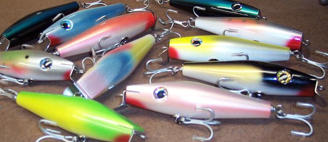 Well its the weekend of the RISAA Show, so I thought I would post some details of what BigFish Bait Co. will have on hand this weekend for custom wood! You will find us in booth 911 with the best selection of BigFish Bait Co. plug styles and colors you will see at any time this season! Hopefully when you arrive you will find what you are looking for.....but in case you don't, please ask me if I have it as I will not be able to have everything and every color out all at once! So please enjoy the pics and I look forward to seeing and meeting as many of you as I can!