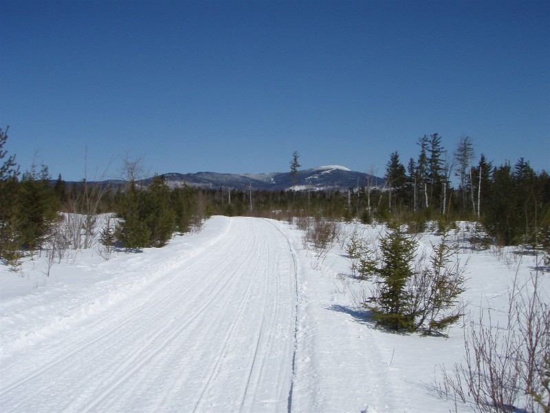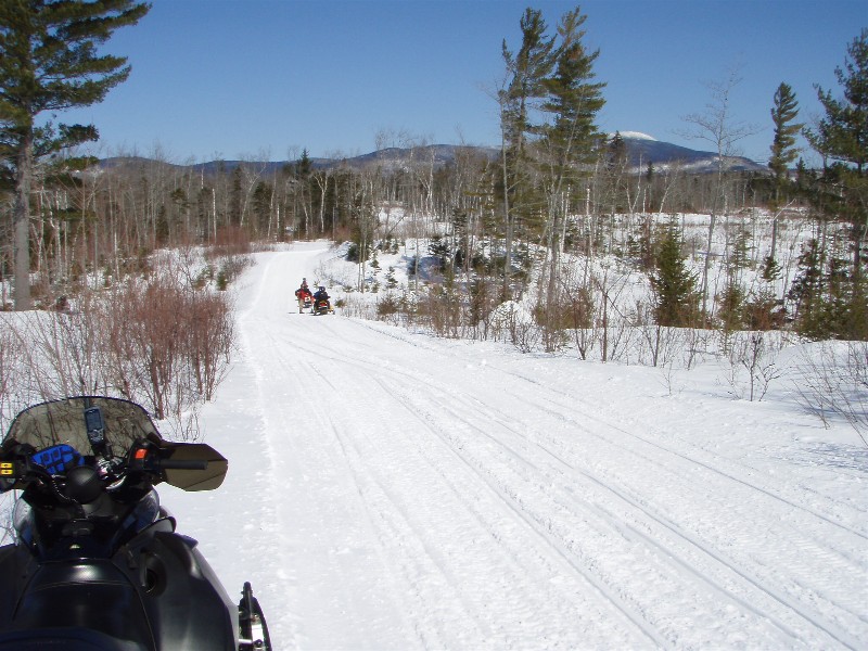 Well got back yesterday and the pics speak for themselves. Drove up with no sleep after work Friday. Got to Jackman at 6am and it was pouring. Gassed up with 100 bucks for the sleds and trucks and sat in the rain pondering why. Just as we were going to take a nap I heard the tell tale signs of sleet. All of a sudden it turned to snow and for the rest of the day it snowes. A few minor areas of drizzle but all in all we got about 3 inches of snow. First 2 are one of many moose we saw that wouldn't leave the trail. The 2nd is the border cut with Quebec. Still 4-5 ft of snow off trail. Hardly saw any dirt or rocks. Snow is really soft and wet in the afternoon.