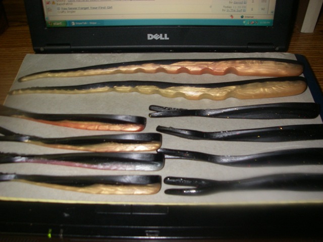 For Sale...3 lots of rubber baits made by S-B Veteran Bob (Got Striper) Sirois...Bob made these rubber baits for a few shops and through his web site. These are more durable than any on the market that I have ever used. These do not tear up when on heavy canal jig heads and can be rigged in many many ways. These have not been sold for a couple years and I just have waaaayyyyy too much and have decided to get rid of some as I have a purchase I wish to make in the near future.