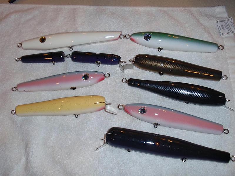 Traded some rain gear for these...canal style pencil, beachmaster junior types, atom 40 type, masterlure jointed, spooks, and gibbs gts type...all made by Biteme...trust me, the picture doesn't do them justice...
