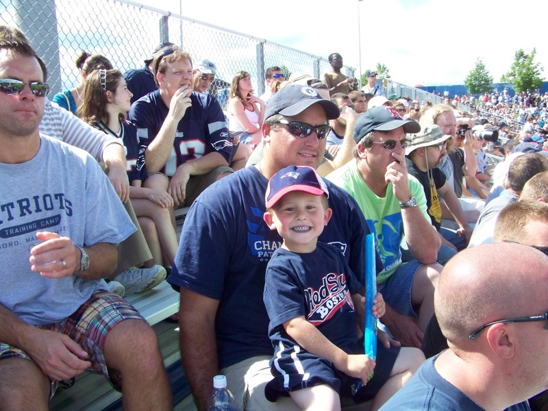 My wife and I took my 3 1/2 year old son to training camp. He loved it! All Free except for the consession stands. We sat in the bleachers and got some cool pics. Plus they have a good size theme park for the kids to run around in. I stopped by the Bass Pro shop as well and my son loved the fish tank as well as the shooting gallery and bear cave. Good take if anyone is thinking about going. Oh and by the way Brady, Maroney, and Welker looked great. Didn't see Moss out there but I could have missed him.