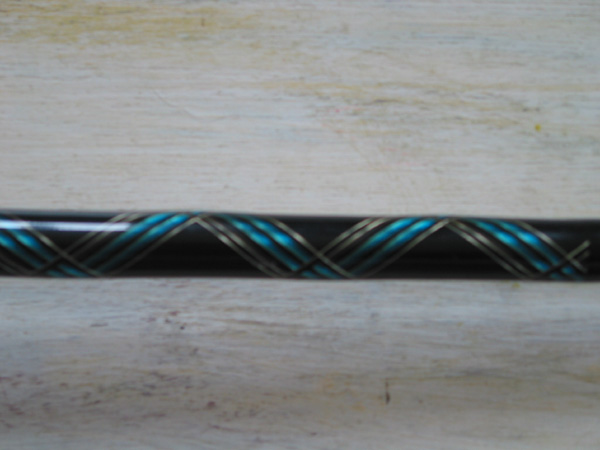 All Star 1208 cut 6" from the butt wrapped by CMS with a really cool silver and blue spiral. Fuji Hardloy guides (starting with a 50) and an Alconite size 16 tip. Fuji plate style reel seat positioned 22" (center to butt) which can be moved if you so desire.