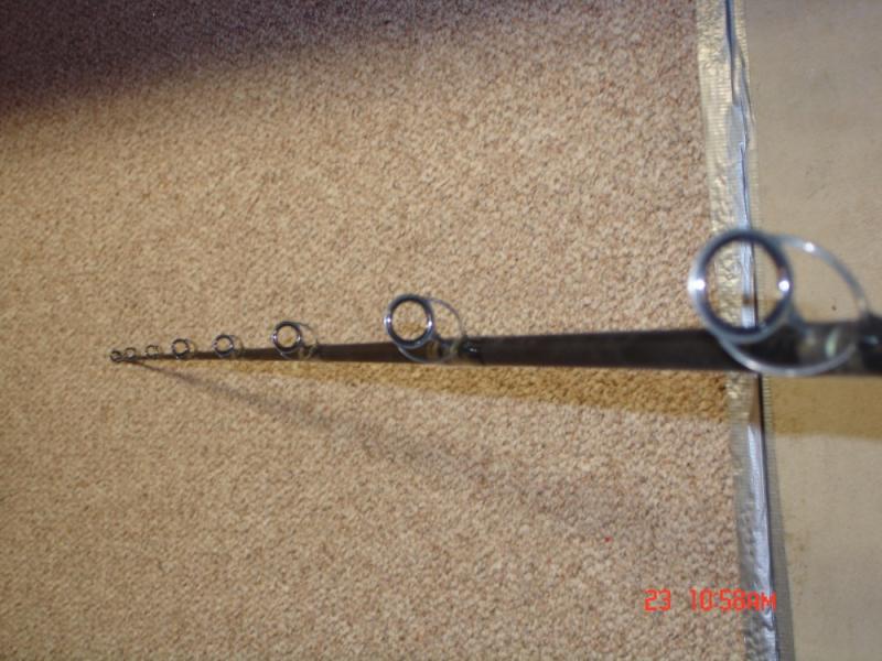 10', seven silicon carbide guides and trigger reel seat. Three years old and in very good shape. Rod is used for the three weeks every spring in the canal with rubber shads,then put away for the season. Asking $ 200/bo.