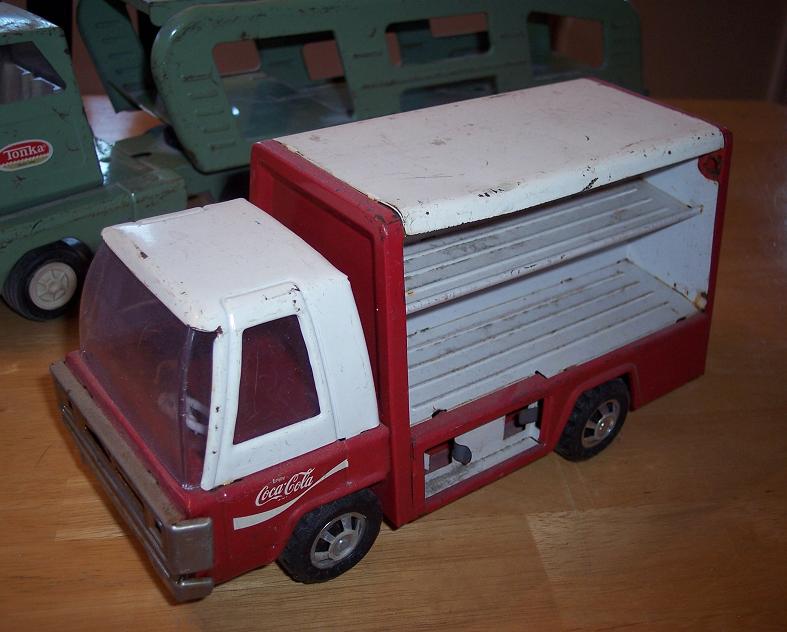 This truck also is my original! This Coke truck used to have little plastic cases of Coca Cola and a 2 wheel dolly to complete the package! Used this alot! Great story.....this truck was lost to me for years until one of our neighbors was moving and came across it in her garage! Man was I surprised.....like getting a visit from a long lost friend! Note how the neighbor knew it belonged to me!