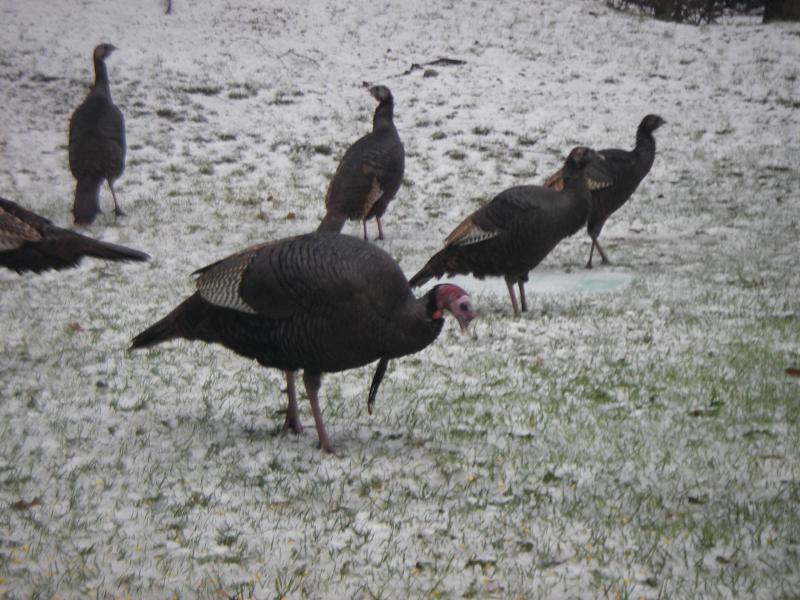14 turkeys and 2 dear today, missed getting shots of the deer. Turkeys were loving the corn I threw at them.