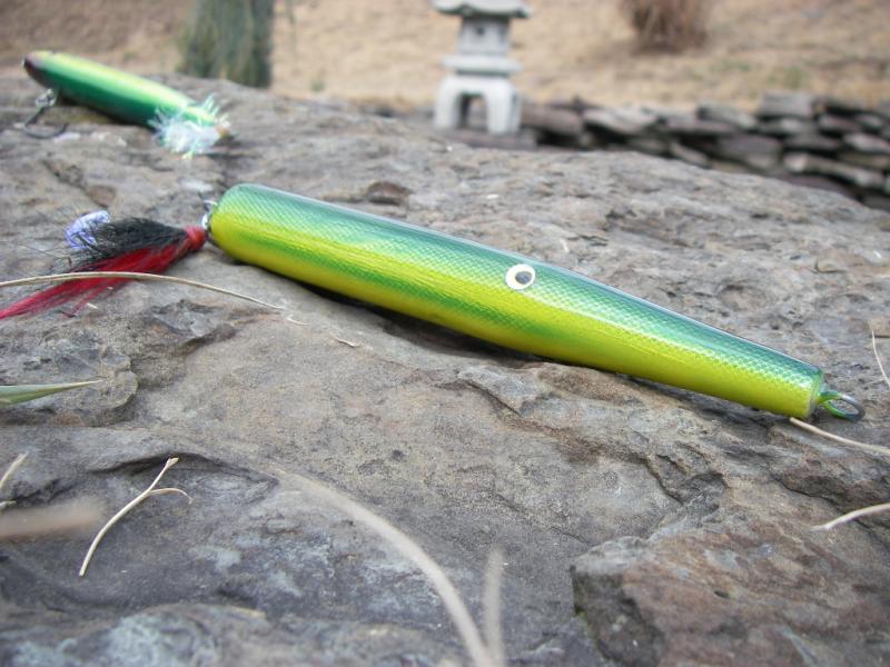 Very nice. On the stubby move that belly hook up forward and taper the rear end and you have the plug I catch most of my fish on other than skin needles. Add some black saddle hackle on to a 5/0 ss siwash with some crystal flash and voila, you have a killer plug.