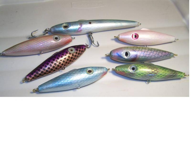 thanks guys, getting itchy to fish and the water was rolling in nice at the beach this morning....the spooks and squid are about 5"-1.5ounces...the pencil 7" 2.1 ounces and the larger needle 2.5 ounces