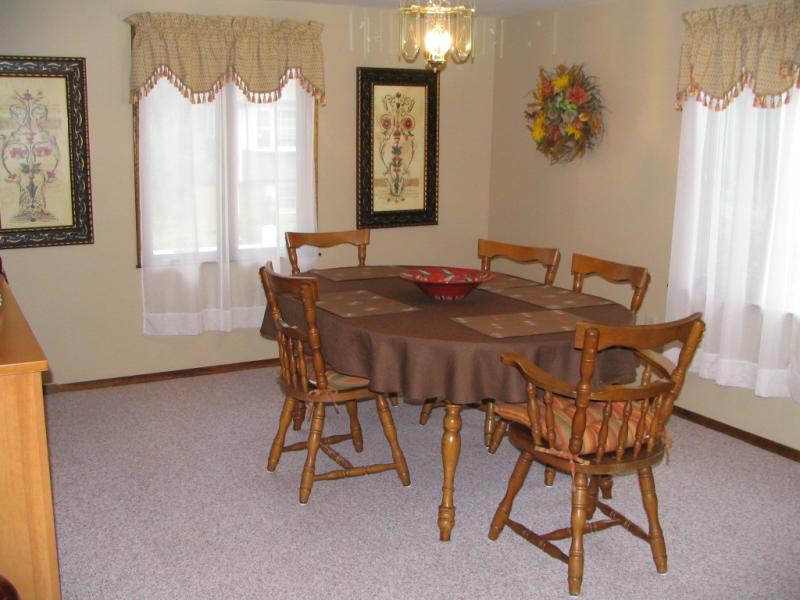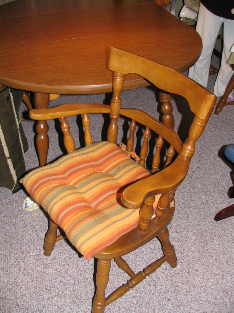 i have a wood dining table with 5 chairs, cushions for the chairs, and 3 nice table clothes for sale.
