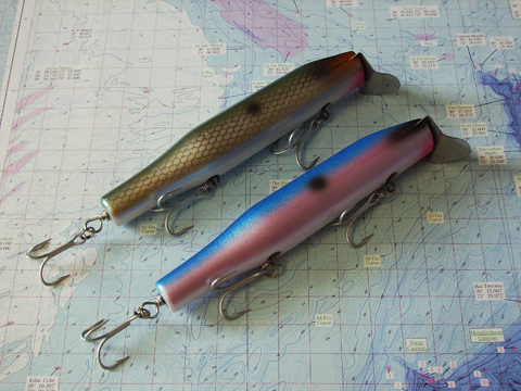 I'm not sure what kind of response these will get and I don't want to overbuild. These weigh in around 4 ounces, are 7 inches long and dive down at least 10-feet. The wobble is tight and vibrant.
