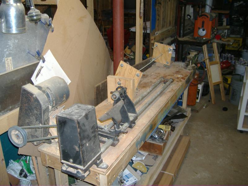 Cleaning up and making room. Lathe/wire bender/plug turner. The vise stays, it was a gift. 36"bed. Not the best but it works fine. I've turned a few hundred plugs with it.