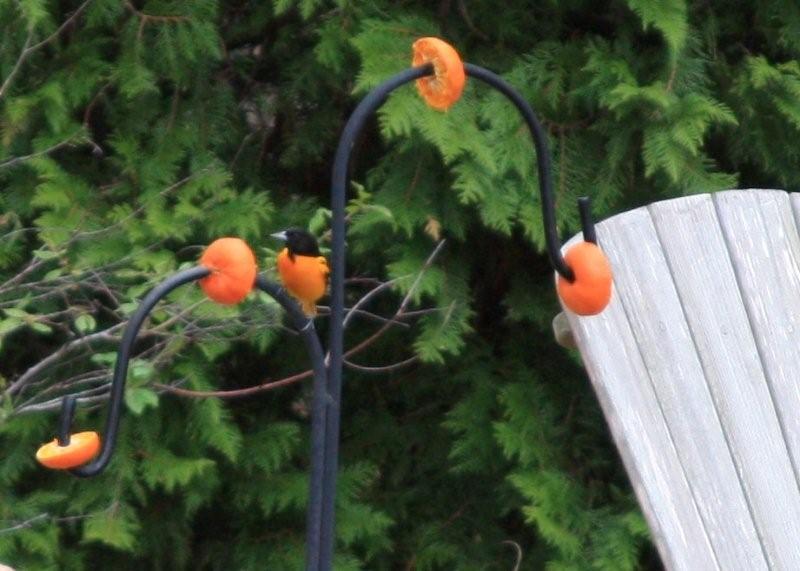 Very nice. Great idea about placing the oranges, I might do similar since I've had orioles now for over 5 years. Just started (re)feeding the birds now that we are dogless (somewhat territorial against any/all other animals).