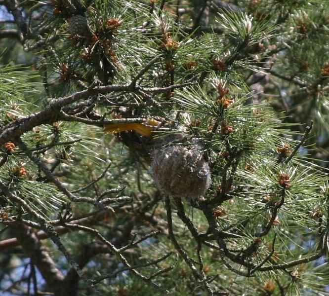 We had out first Oriole nest last year and are waiting patiently for the pair to return. The nest looks just like a sock. They had two babies last year and one was pushed to the ground below. I burried it. It was very underdeveloped.