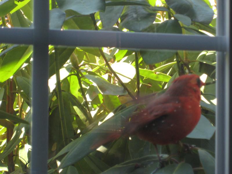 One of the more interesting aspects of backyard birdwatching is if you have trees nearby that birds are nesting in, you will eventually see what the young birds look like. For example, young cardinals are colored like the female. Another is when sparrows leave the nest, they don't leave the area. They will continually try to get the parents to feed them like they did when in the nest. (If you see a sparrow hunched down with its wings fluttering by its side with its mouth wide open, that a "fledgling" that is trying to sponge a free meal from mom and dad.