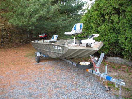 Looking to finance a new T-top, so I'm selling the 16 footer. It's a Grizzly 1648 fully welded galvanized 2002 hull, 2002 Merc 25 HP 25ML 4 stroke and 55lb thrust Minn Kota autopilot electric trolling motor. I've used it a dozen times every winter running 10 minutes to and from my winter hold over spot, so the hours on the outboard are minimal. I spent $300+ for a new axle and bearing buddies this spring so the trailer is in great shape. I spent $75 for a brand new foot pedal I didn't need (now have working spare) and another $75 for the motor main control board, so the trolling motor is basically mint now. Comes with the usual; anchor, extinguisher, 2 batterys, battery boxes, Humminbird depth finder and spare tire. This is ready to fish as is. My old federation fishing partner runs the Marine USA service department, so I know the Boat, Motor, and Trailer have a Low Trade of $2790.00, High Trade of $3170.00 and Resale of$3900.00. His advise was to start at $4900 and deal, I'm inclinded to be straight up and give you the deal up front at closer tot he high trade in light of the new axle and trolling motor electronics.