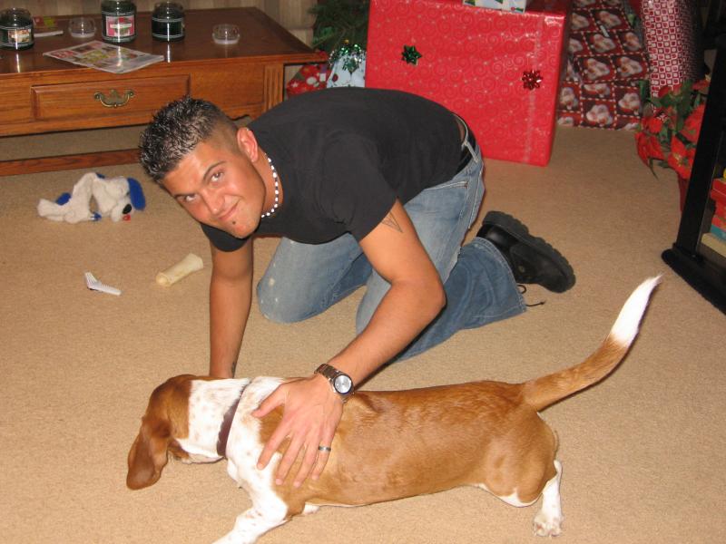 A picture of the family dog with my son who died in 2007. I'd of killed that dog many times if not for the memory of my son who loved him.