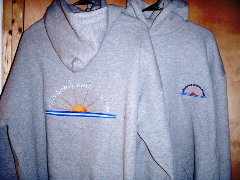 first is afterhours hoodies size XL only. embroidered both sides $25 plus shipping.
