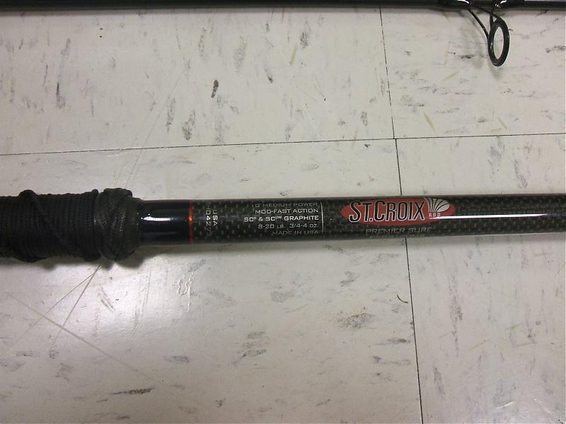 WTS St. Croix Premier 10' spinning rod. This is rated 3/4 to 4 ounces M/F action. Still in great shaped it has a split-grip, chord wrap over top of the cork tape on the handle. The rod has a Fuji Alconite tangle free tip top. It's a very nice rod. The rod retails at $190 I'm selling it for $140 local pick-up or buyer pays shipping.