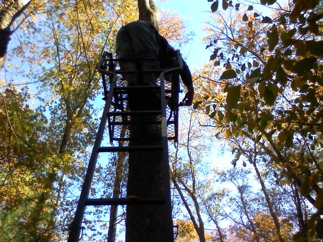 End of last season we hit #^&#^&#^&#^&s and got these ladder stands. Regular price was around 160.00, we got them for 60. They are 17' and have a removable shooting rail. These things are solid, I think they were Field and stream brand or something like it. Theyt came with one ratcheting strap for the top, and we added a second at the foot platform, not seen in the picture.