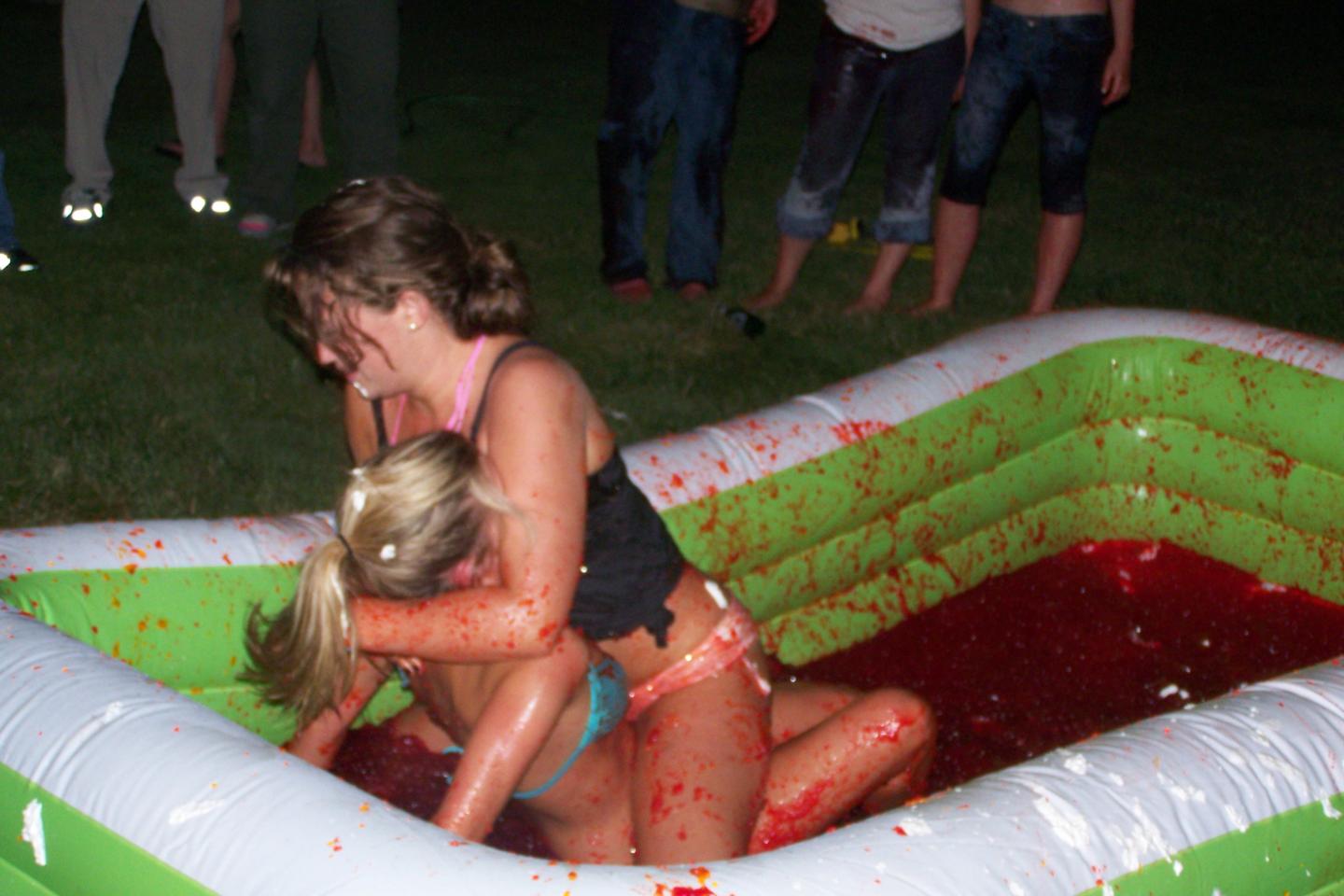 We had 8 girls that wanted to wrestle, top prize was 387 dollars. after a few hours of liquid encouragement it was on.