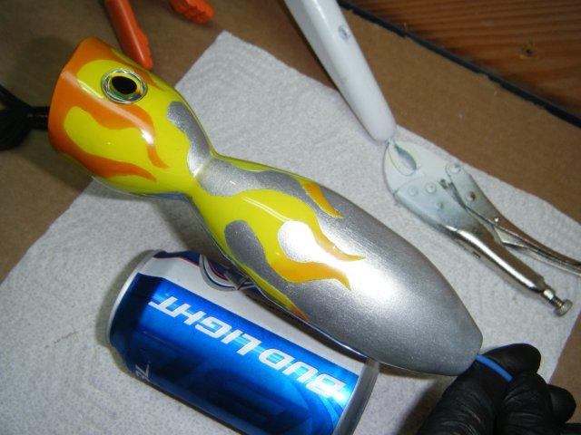 New here, and I wanted to show off some of the first poppers i made earlier this year for Muskies. I'm still a newbe, this being my second season building. i took the liberty of trying out some flames and marbling techniques on these.