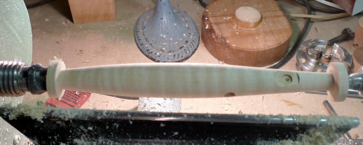 The green needle is my copy of the 8.25 inch Musso Wadd design and the Tiger maple one on the lathe is the 7.25 inch Musso needle.