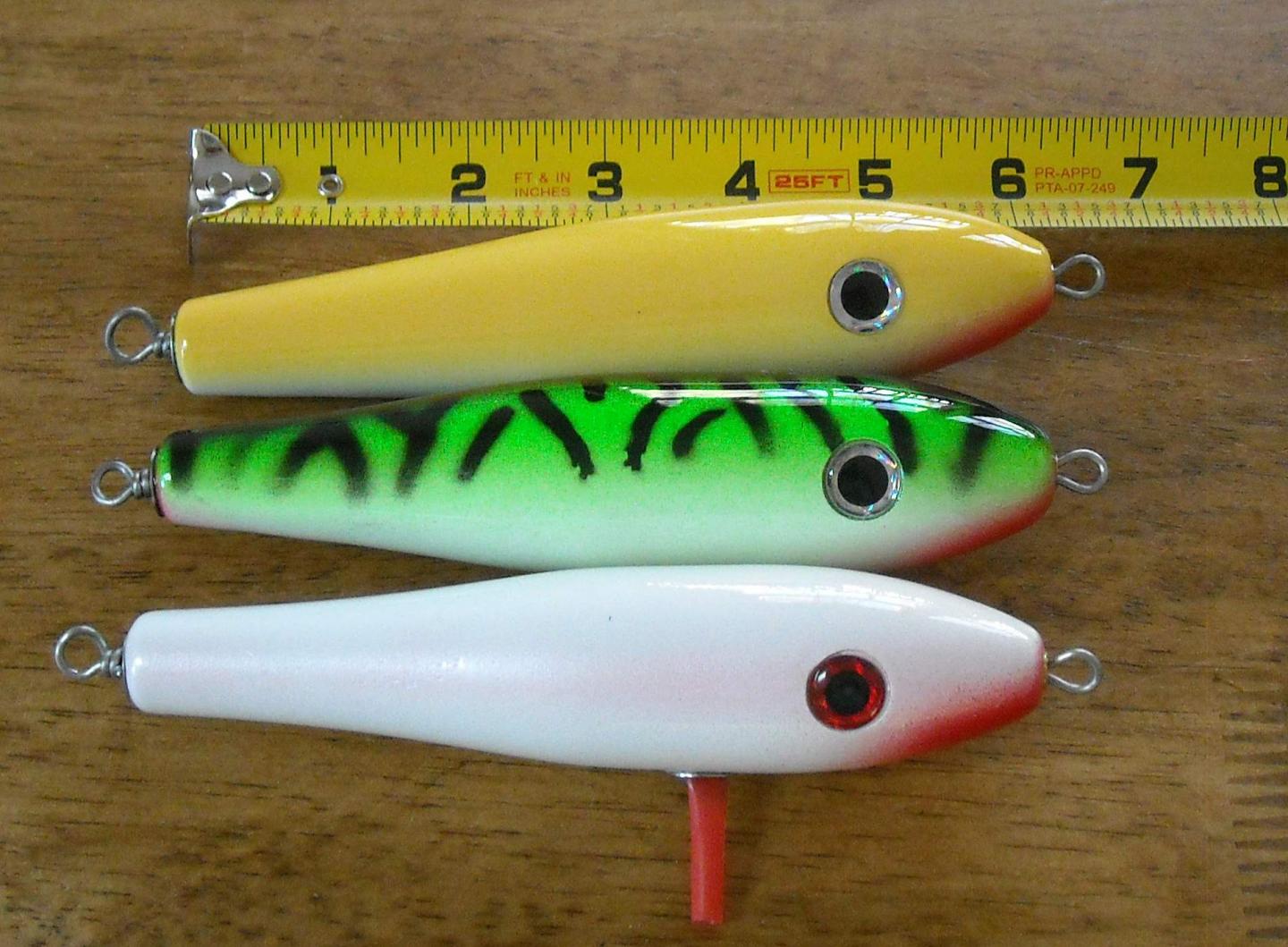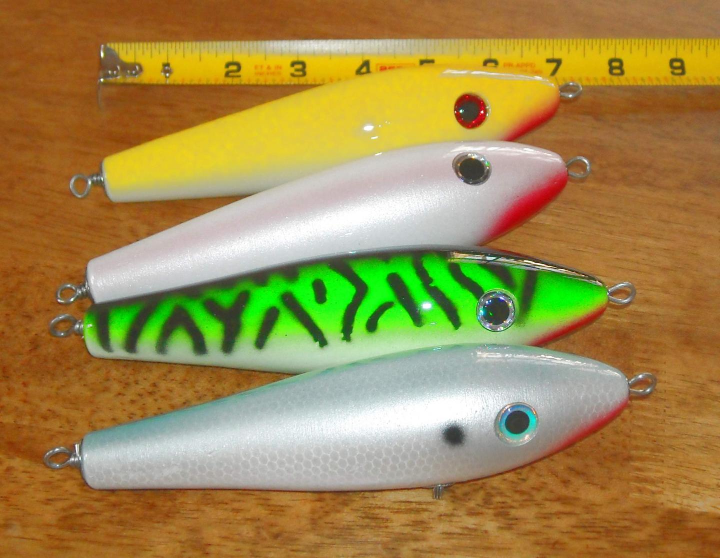 It's been awfully quite in here so I thought I'd post some spook prototypes I made to try next year. I made 3 different sizes to match up with 3 different rods. I used a couple different weighting schemes, hopefully there's a winner in there somewhere.