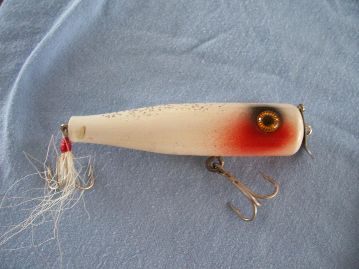 It was about 1" in diameter and weighed about 1 ounce. All screw eyes and no weighting. They are great fish catchers. We used to use them in Boston harbor in the 80s. They work great when you can be above the water on a dock/pier or on the bow of a boat, and worked with a jerking motion of the rod tip. This is actually the one plug I was thinking of when I got into plug building. We couldn't get any more of these and they were our favorites. I don't think anyone is making a lip for it. I use one of the pike style lips that Mike at CCBT has before it is bent and is just flat. The bottom curved portion is the exact size you need. I just trace one and cut off the top section, bend it and go from there.