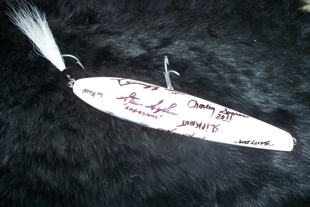 I Took a WHITE PENCIL to the show saturday with intent to get some SIGNITURS on it that part was OK . BUT then I decided to COAT it to PROTECT them----> bad IDEAR so now Im going to fish it, hoping w/ all the names on it it will bring some good MOJO or if the fish see the names, maby they will stay AWAY