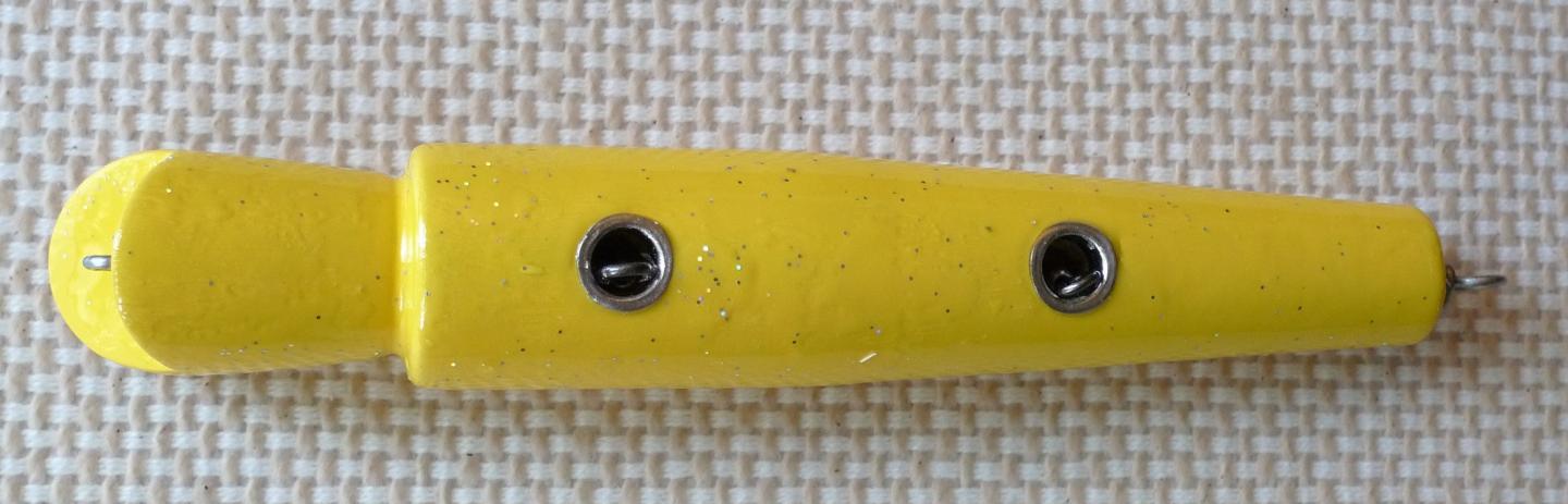 Buddy of mine picked up a nice Floyd Roman Sizzler, interesting plug and I've got to say a butt ugly one too! Any idea of what type of swimming action these had? From the way it is weighted it looks like it would have a topwater darting action. Peter, ever swim one of your's?? May just have to take this one for a swim.
