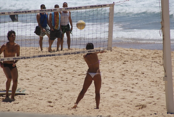 Ah, the women's beach volleyball. How do those things stay on