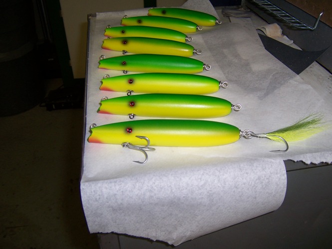 I regret I have not posted anything for a while but I have been building plugs lately. For the most part I am working on some of the same stuff that worked for me last season, (sliders, peanuts, needles etc) incorporating some new building tips and ideas I picked up during fishing season. Hopefully always improving. I will post a