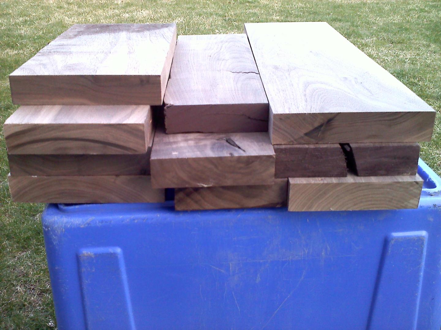 10 pieces of American Black Walnut. Nice stock, all 1" thick (five quater) about 4"-5" wide and over 10"long. $15 for the lot or trade for a plug.