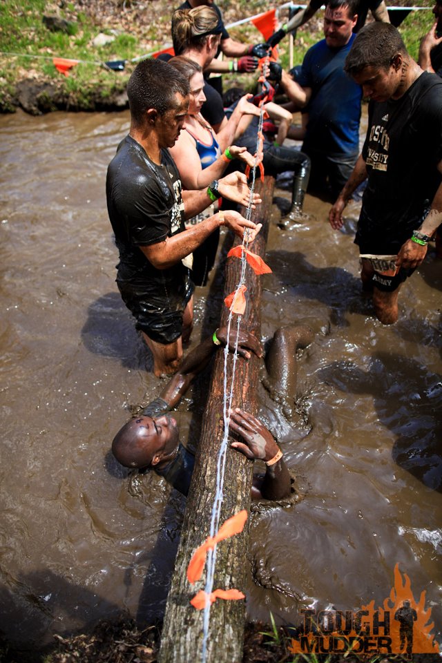 "Everest" was one of the very best obstacles as you had to scale a 15' tall half pipe, which a lot of the better athletes did unassisted. After you got to the top you hung out for a bit and helped fellow mudders to the top if they needed assistance.