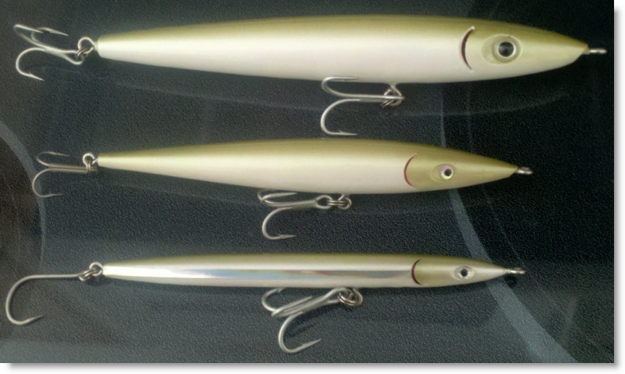 I really enjoy(ed) fishing the smaller one, it walked/glided very well and stayed level even in current. I just twitch-retrieved it at a good clip and it got smacked around.