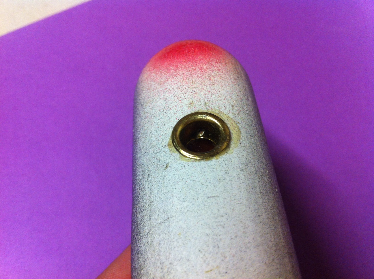 After looking at these plugs over and over you notice cool things, the way he set his belly grommets is neat, looks like he took an awl and banged each end into the body to hold em in place.